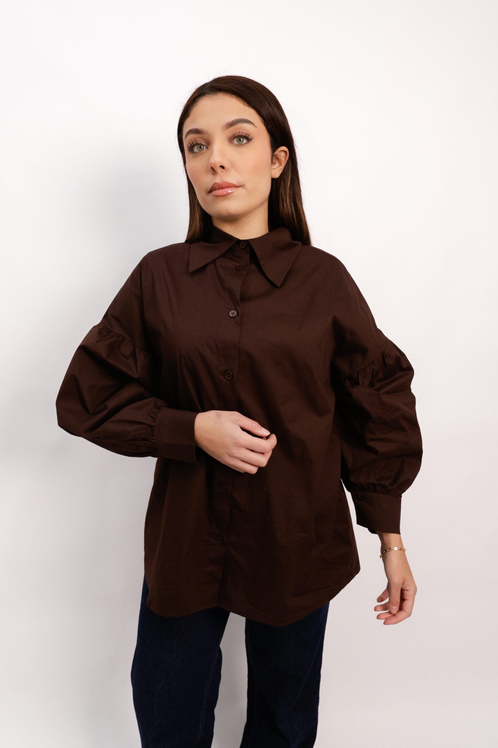Chemise marron à manches bouffantes