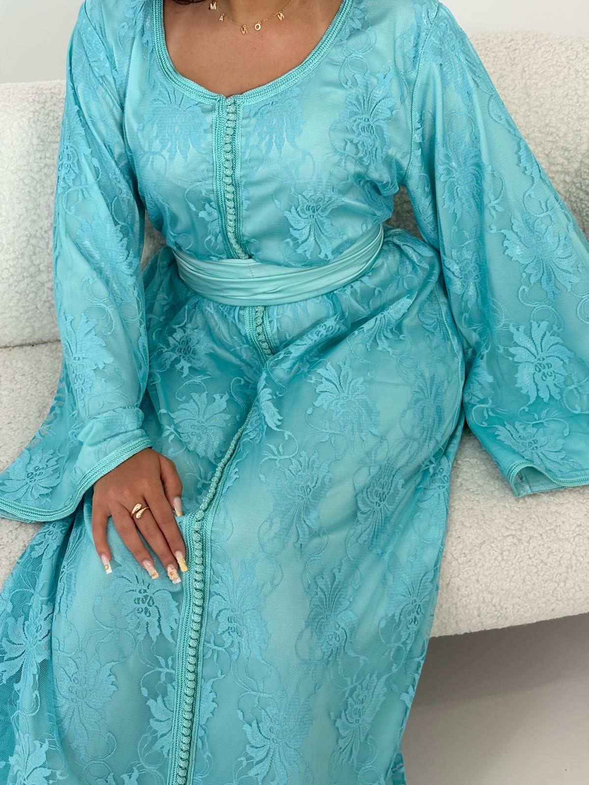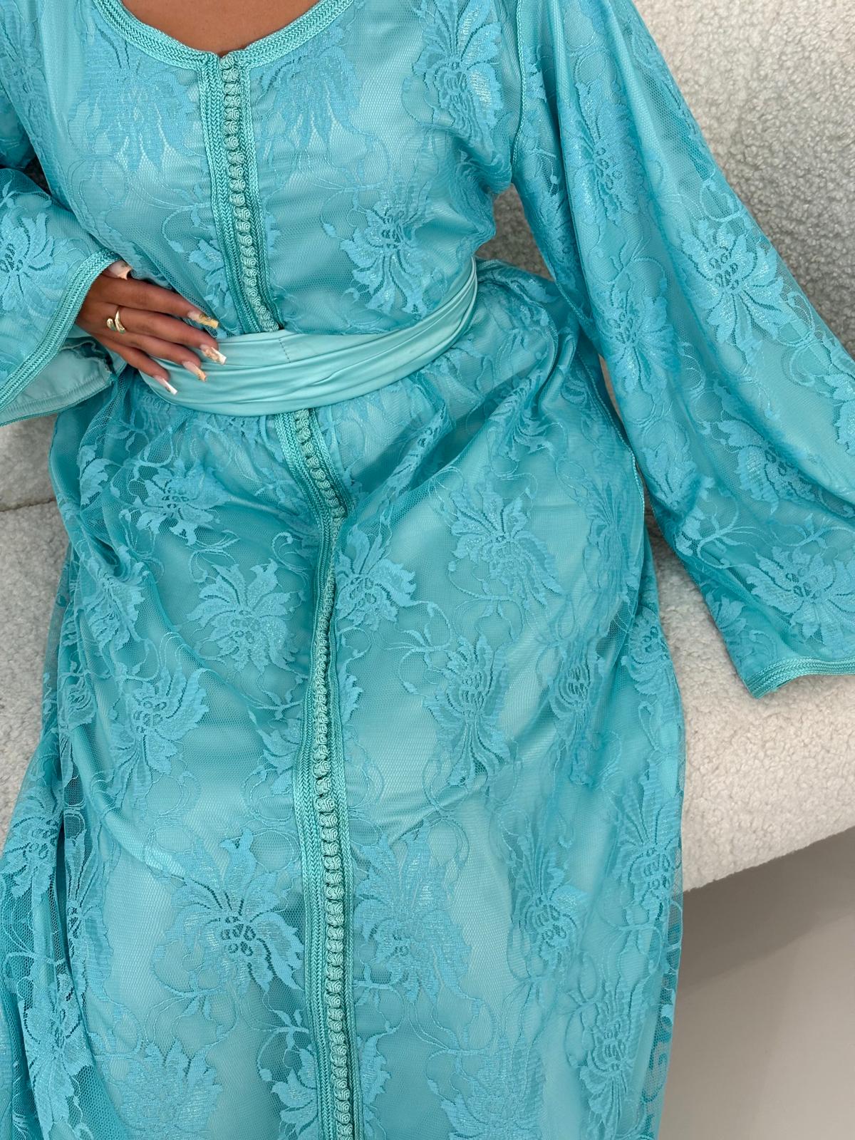 - Caftan en dentelle turquoise
