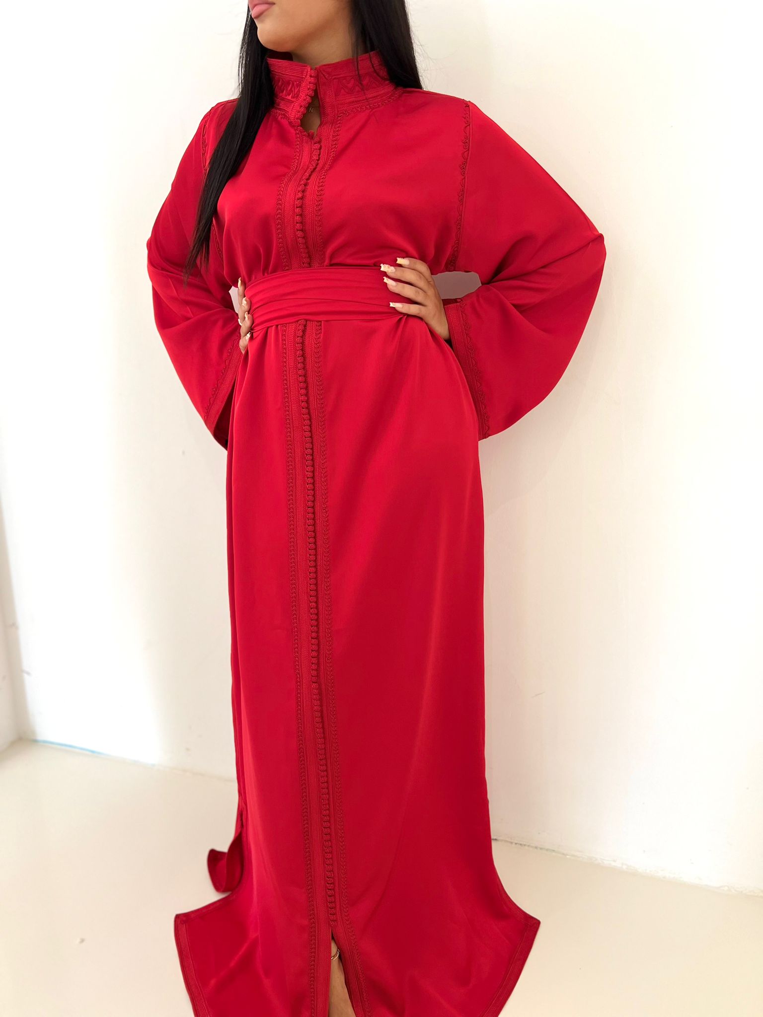 Élégance, intensité et raffinement s’invitent dans votre garde-robe avec ce somptueux caftan rouge.
