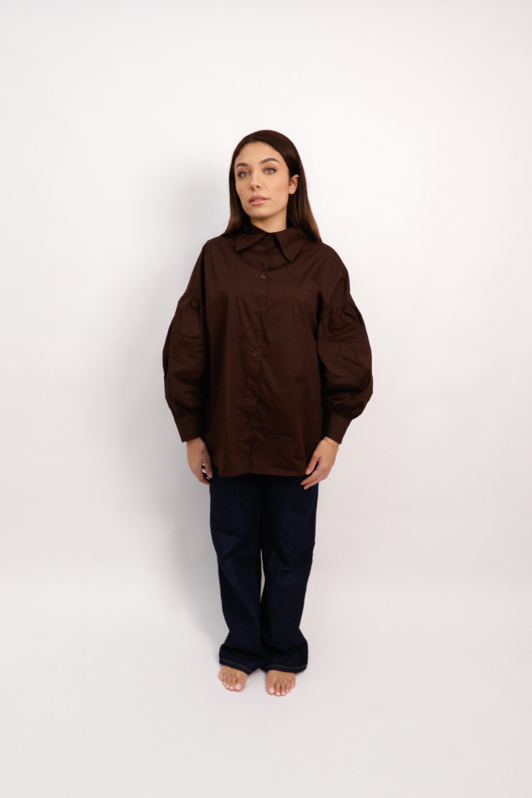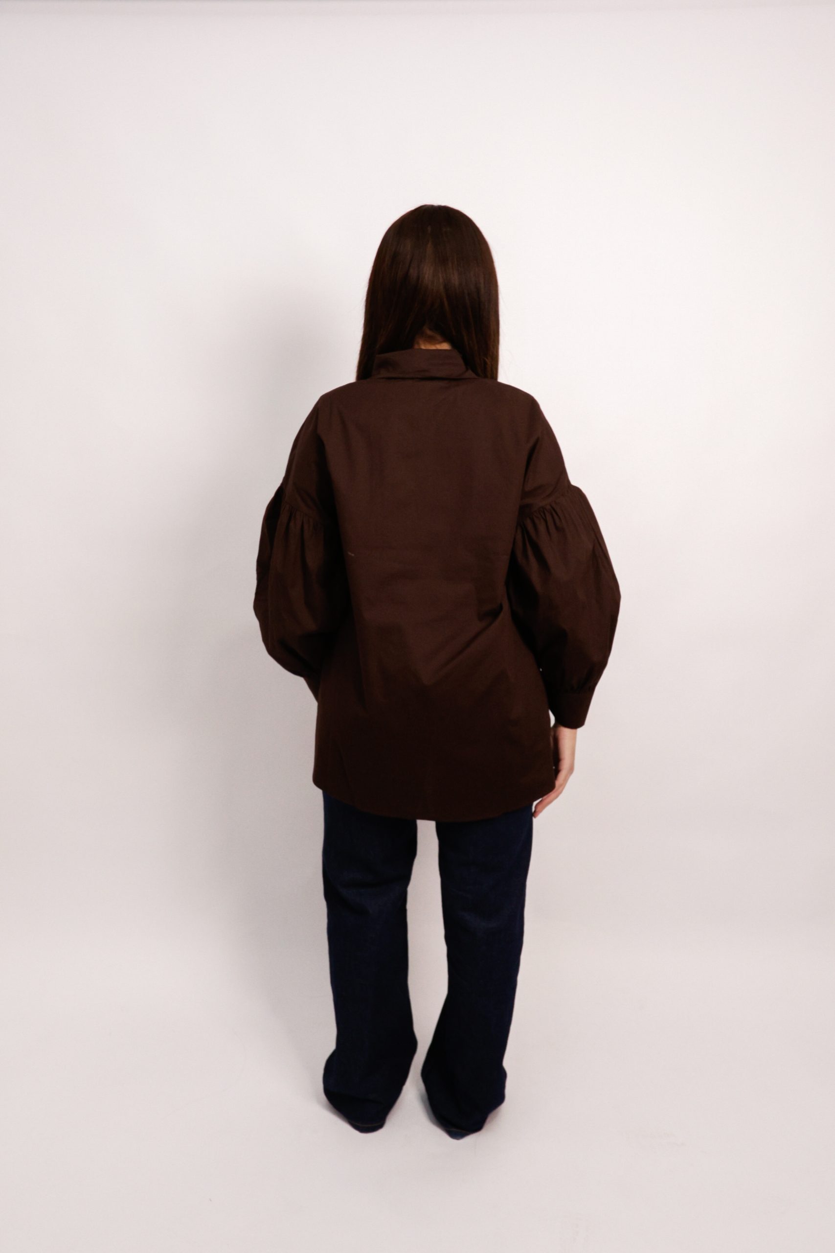Chemise marron à manches bouffantes