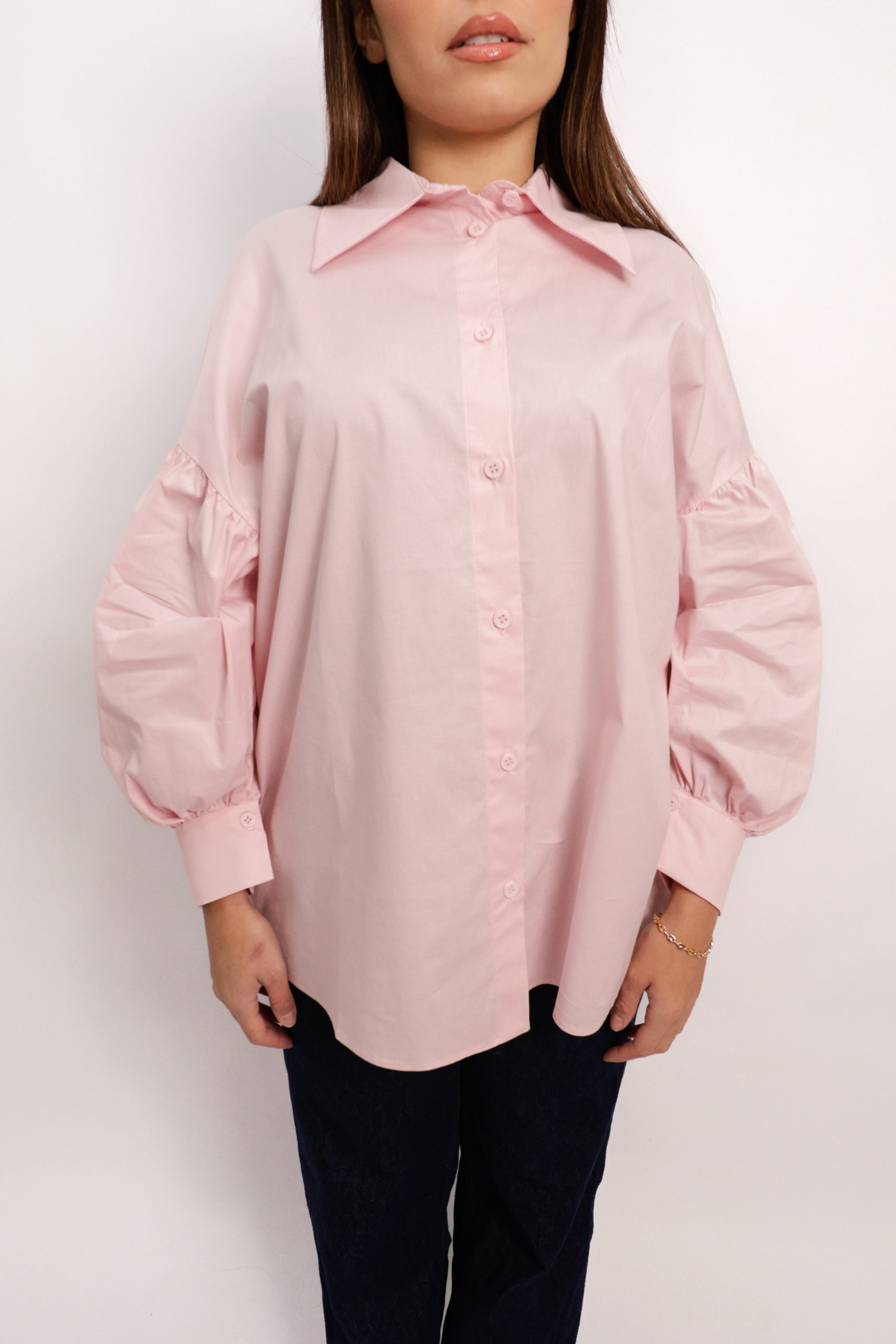 Chemise rose à manches bouffantes
