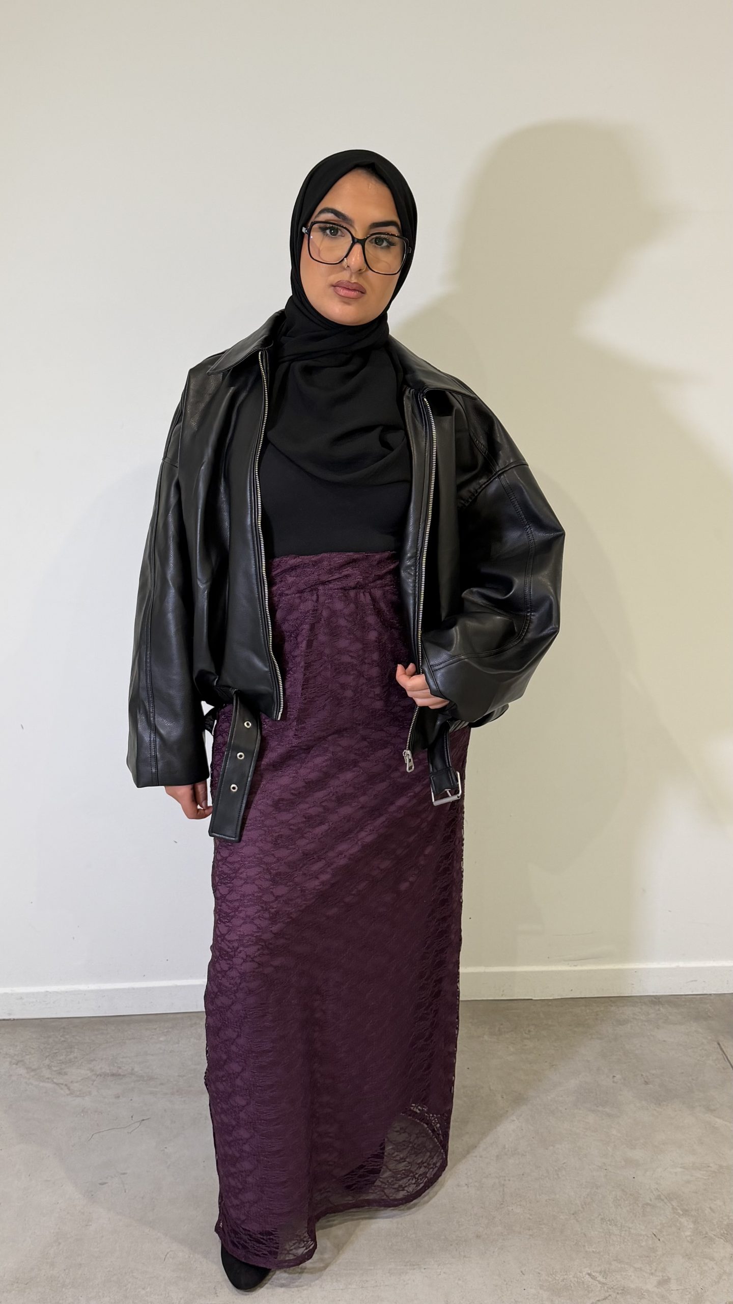 Confectionnée dans une dentelle délicate, cette jupe dévoile un magnifique coloris violet, idéal pour la saison.