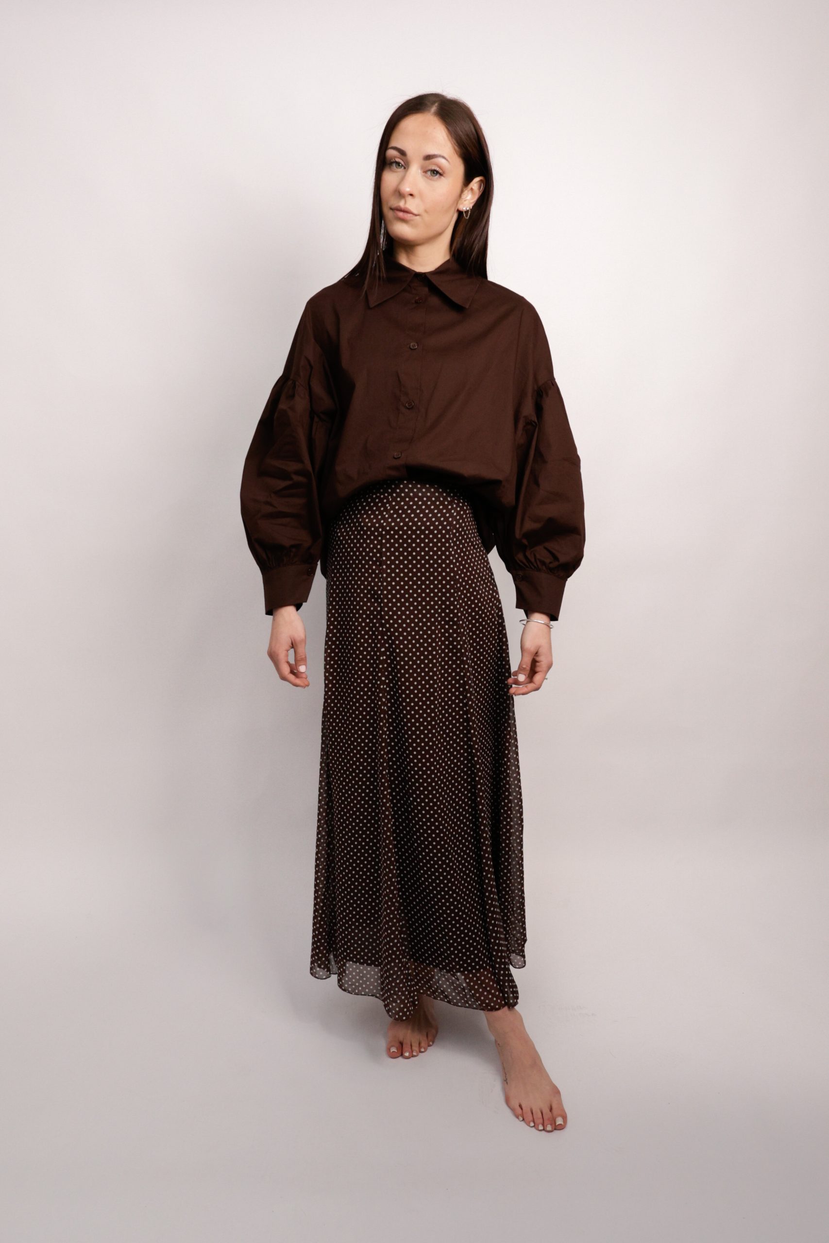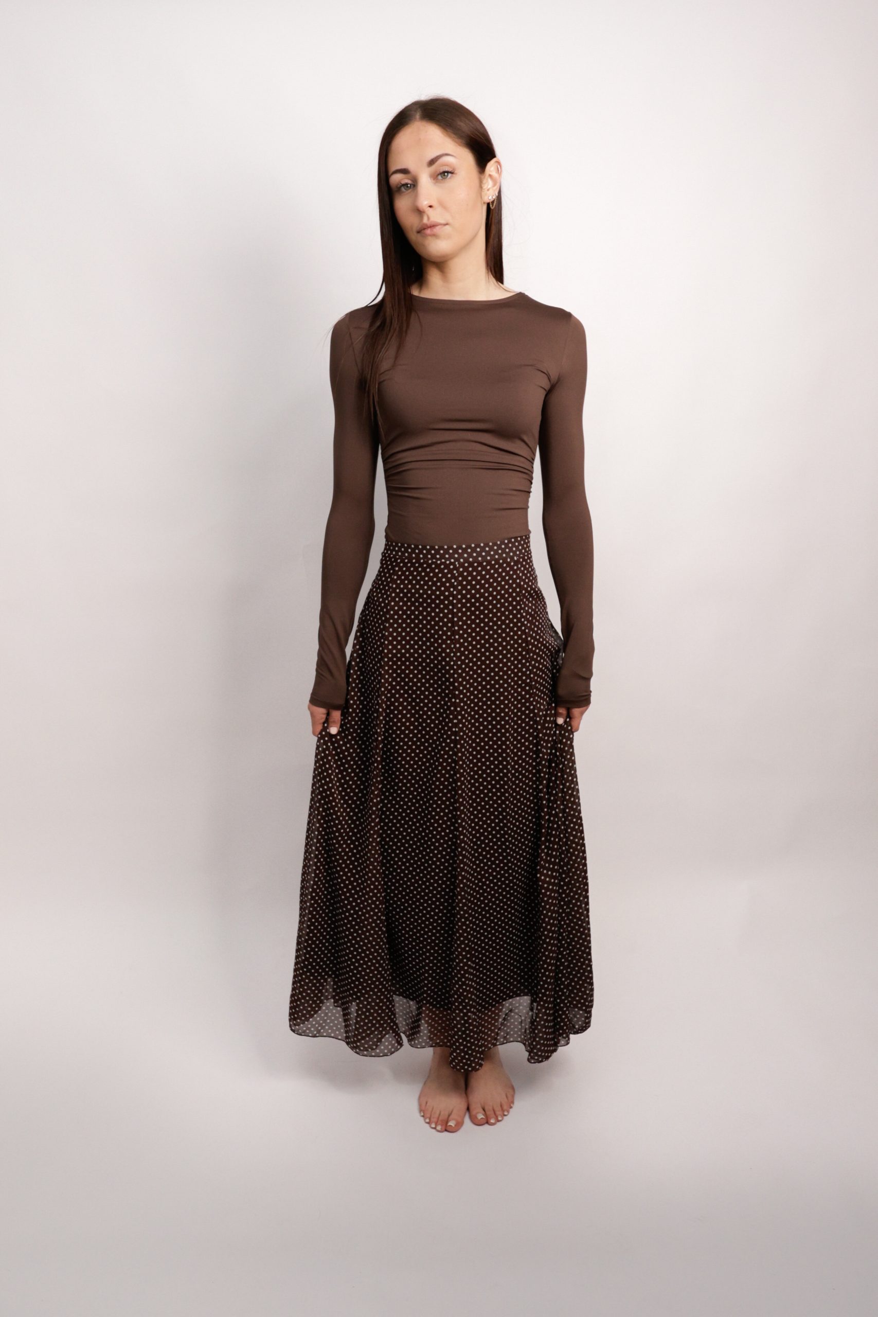 Jupe longue marron à pois